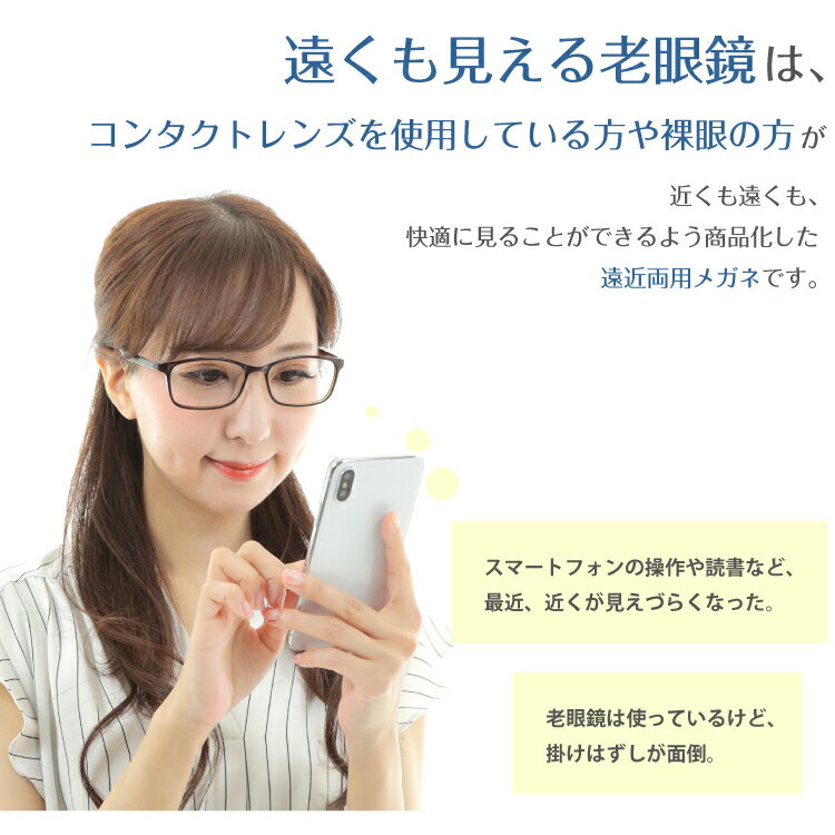 コンタクトレンズを使用している方や裸眼の方で、スマートフォンの操作や読書など、近くが見えづらい方にオススメです。